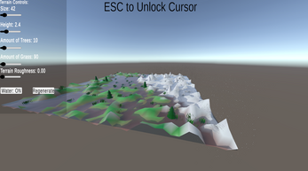A Procedural Generation tech demo made for a 2 week game jam. Includes procedurally genrated tree and grass swaying, procedural mesh creation, tree and grass placement, and procedurally generated water.